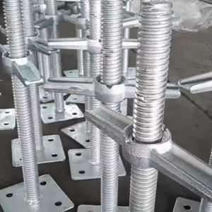 “Durable scaffolding legs and support pillar jacks made from high-quality galvanized steel, designed to provide stable and adjustable support for construction projects. Ideal for use with concrete steel pillars, these versatile components ensure secure and reliable scaffolding solutions.”